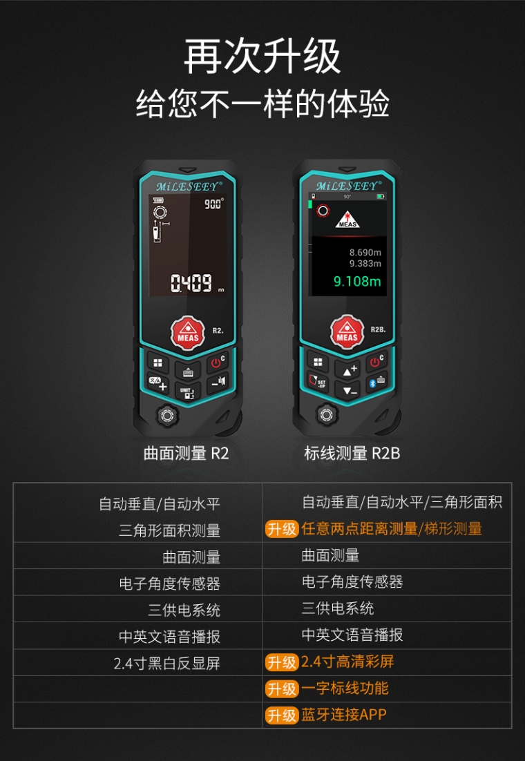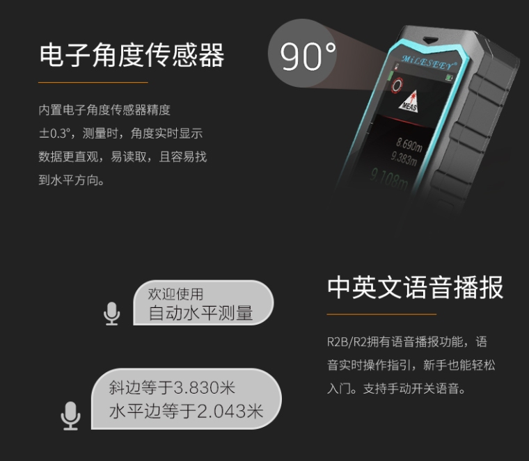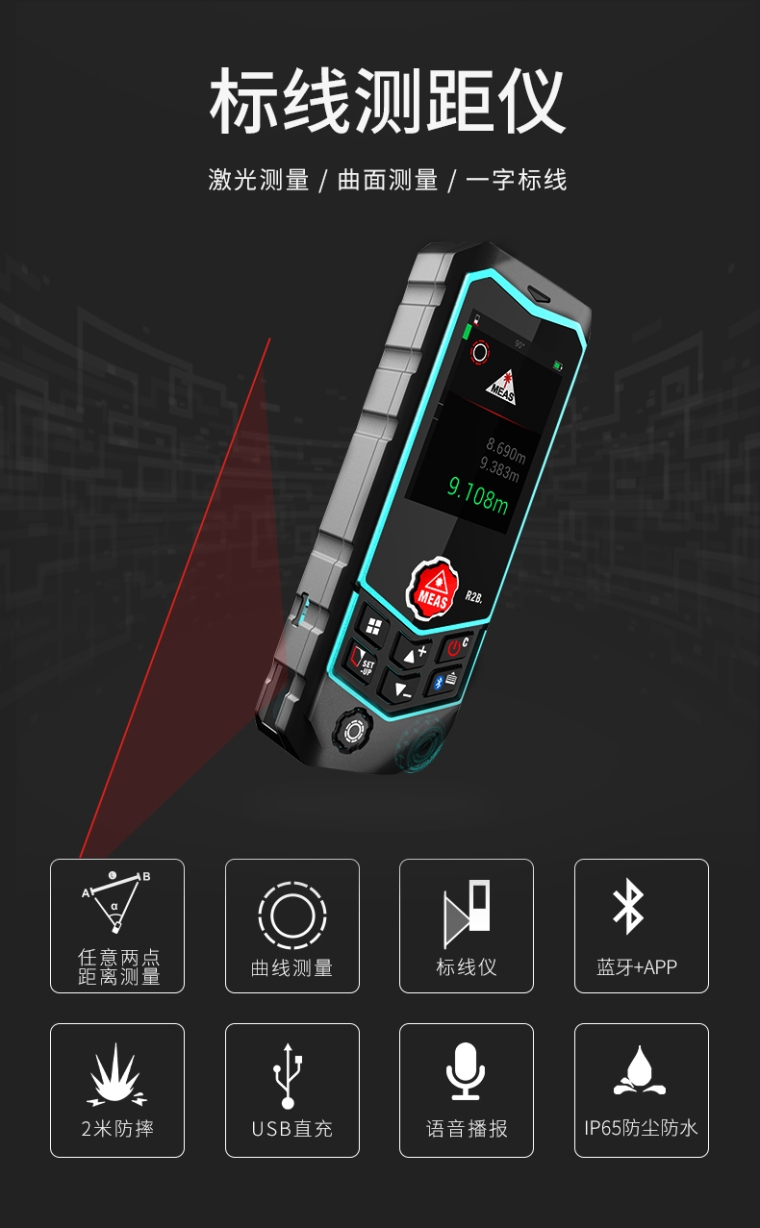R2B 100米标线激光测距仪高精度红外线测量仪电子激光尺语音充电
