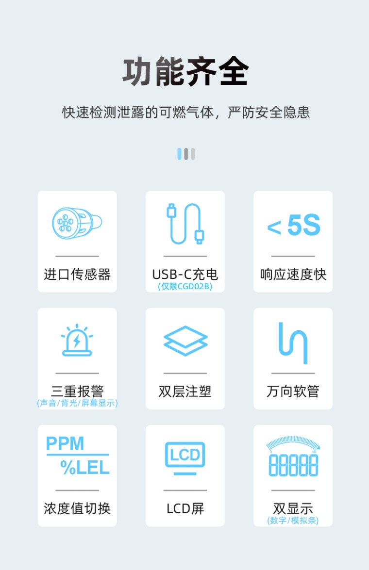 3、可测自然气体、煤气、液化天然气