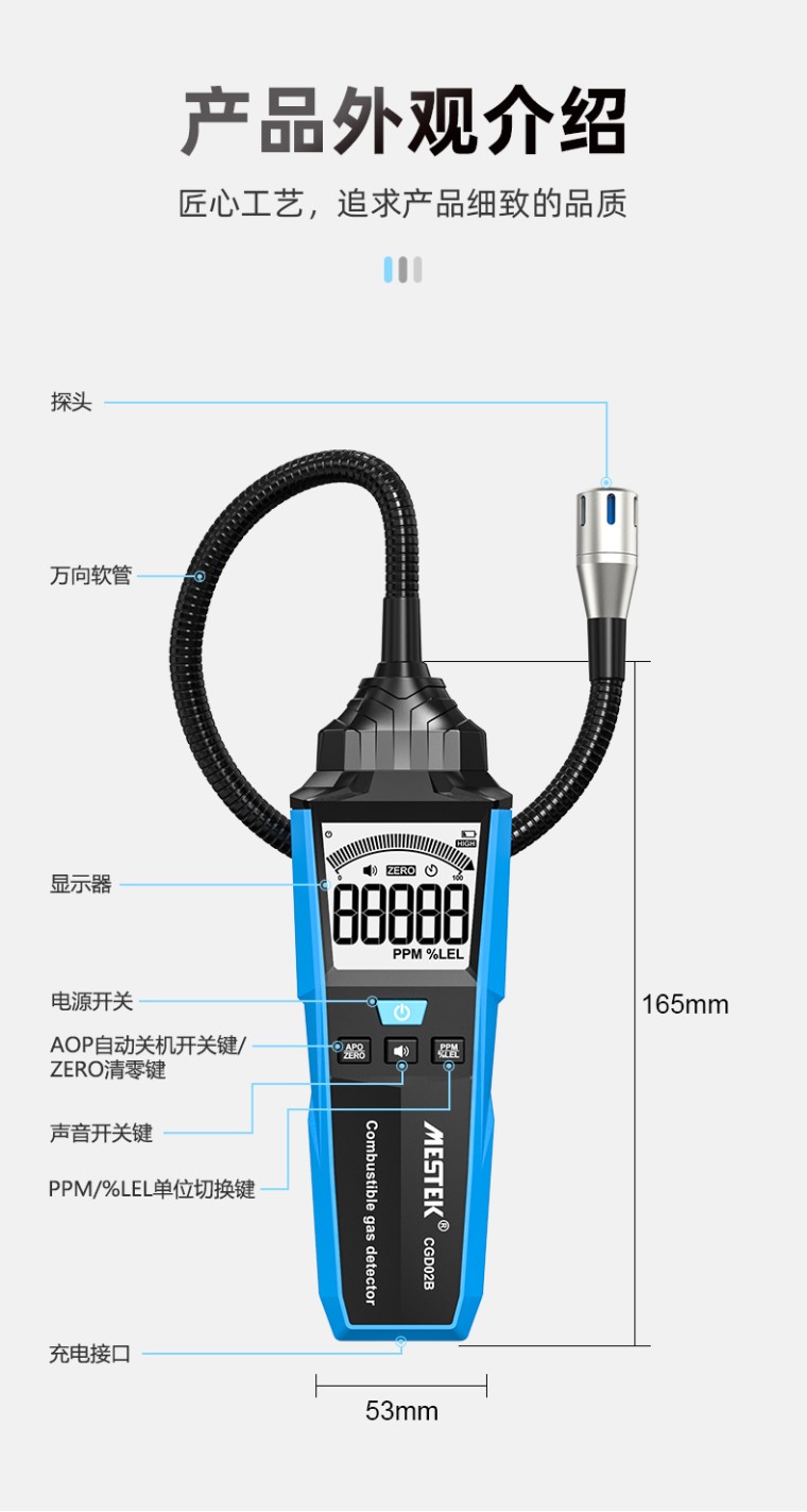 4、测量范围:0~100%LEL / 50~50000ppm(以甲烷为基础)
