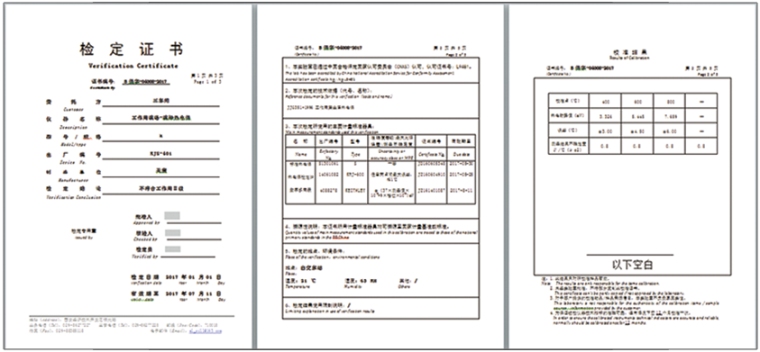软件可自动生成中、英文对照检定记录,支持数字签名,可为用户提供专业的报表。并可选择“检定”或“校准”等多种格式的记录表格、证书。检定证书或校准证书可选择标准格式或自定义格式。根据客户需求可将记录表格、证书原始数据导出到Excel中。