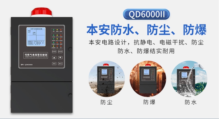 多点监控气体报警控制器,用于检测环境空气中待测气体的浓度,可带多个检测不同气体成分的探测器,并同时对多点进行集中监控,防止中毒事故、爆炸、及火灾发生,从而保障生命、财产的安全。