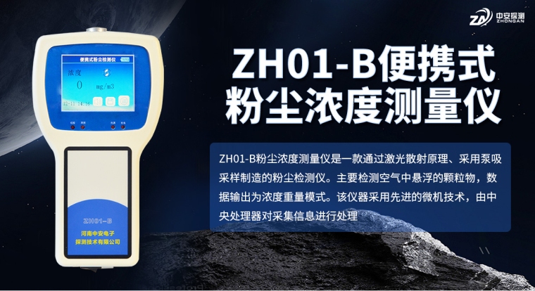ZH01-B粉尘浓度测量仪是一款通过激光散射原理、采用泵吸采样制造的粉尘检测仪。主要检测空气中悬浮的颗粒物,数据输出为浓度重量模式。