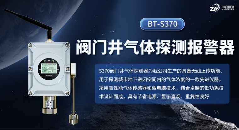 S370阀门井气体探测器是我公司生产的具备无线上传功能、用于探测城市地下密闭空间内的气体浓度的一款先进仪器。采用高性能气体传感器和微电脑技术,结合低功耗技术设计而成,具有节省电源、显示直观、重复性良好、使用寿命长、容易安装、维护简便、操作方便等优点。