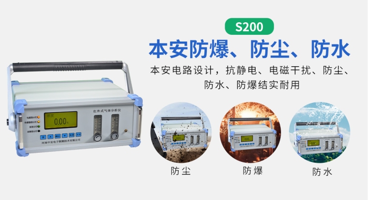 中安S200型泵吸式气体分析报警仪内置大功率碳膜自吸泵式红外检测原理,仪表采用进口红外传感器及先进的数字处理技术,实现对CO2、CO、CH4、NOX、SO2等气体的连续在线分析
