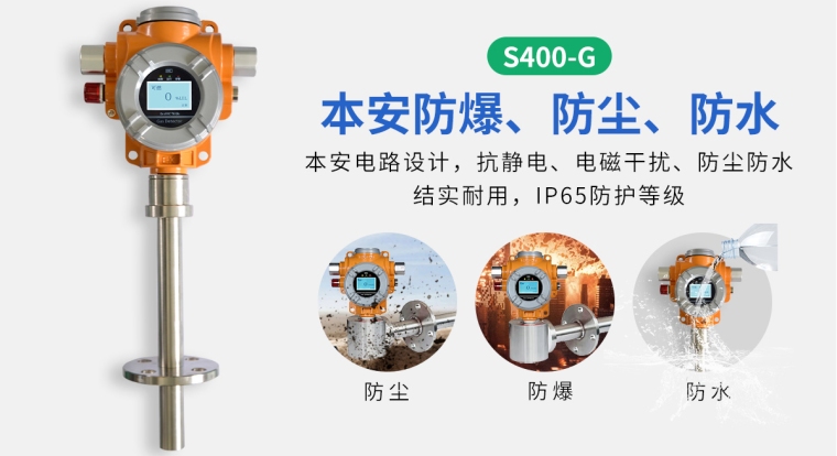 中安探测S400-G管道高温式气体探测报警器,可自由定制可燃气体或有毒有害气体传感器进行检测,防护等级IP65,防爆证书、消防证书齐全