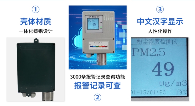 显示方式 | 液晶显示(PM1/PM2.5/PM10可同时显示,也可单独示); 温度时间显示功能 |