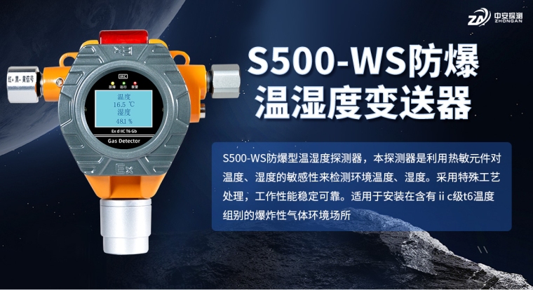 S500-WS防爆型温湿度探测器,本探测器是利用热敏元件对温度、湿度的敏感性来检测环境温度、湿度。采用特殊工艺处理,工作性能稳定可靠。适用于安装在含有ⅱc级t6温度组别的爆炸性气体环境场所,可以和气体报警控制器配套使用,符合标准的要求,本探测器结构新颖、外形美观、与气体探测器配合使用更安全。