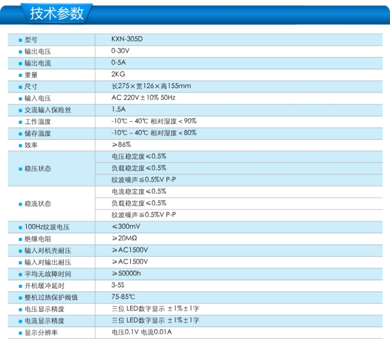 KXN-305D大功率开关直流稳压电源0-30V/0-5A