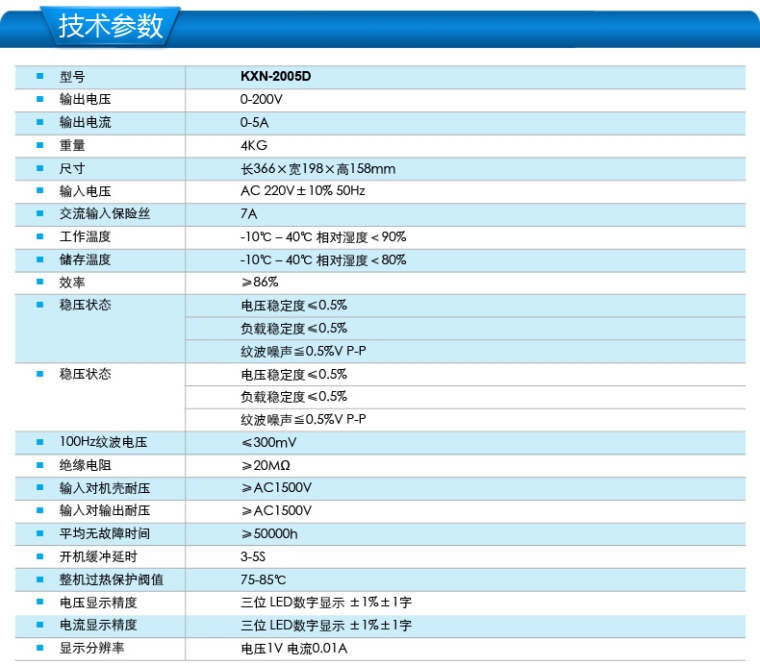 KXN-2005D大功率开关直流稳压电源0-200V/0-5A