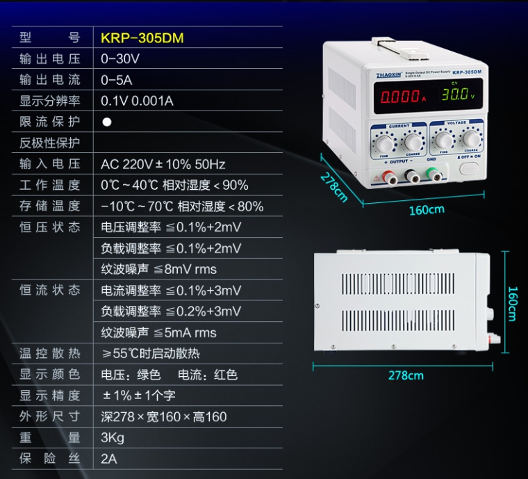 KRP-305DM笔记本维修直流可调电源30V5A150W足功率稳压恒流源