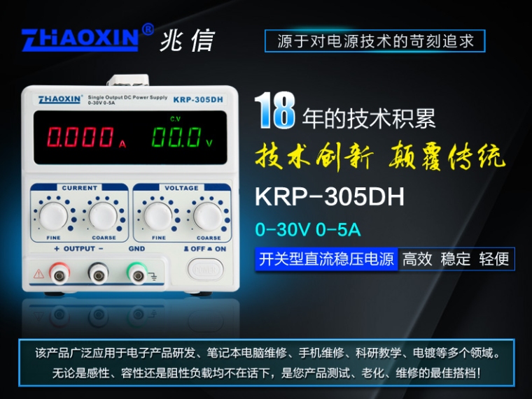KRD-305DH笔记本维修直流可调电源30V5A150W足功率稳压恒流源