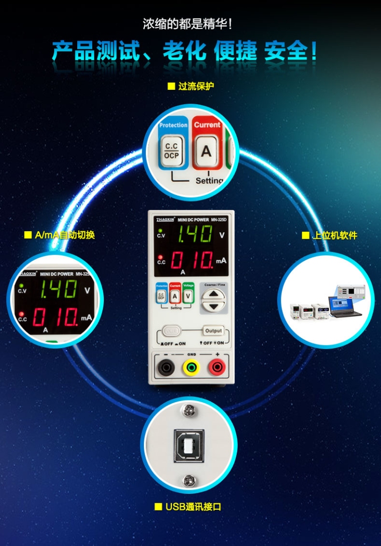 MN-325DU直流稳压电源笔记本手机维修稳压可调电源数显电流表带通讯接口