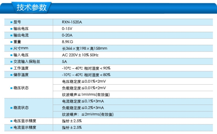 RXN-1520A线性直流可调电源0-15V 0-20A