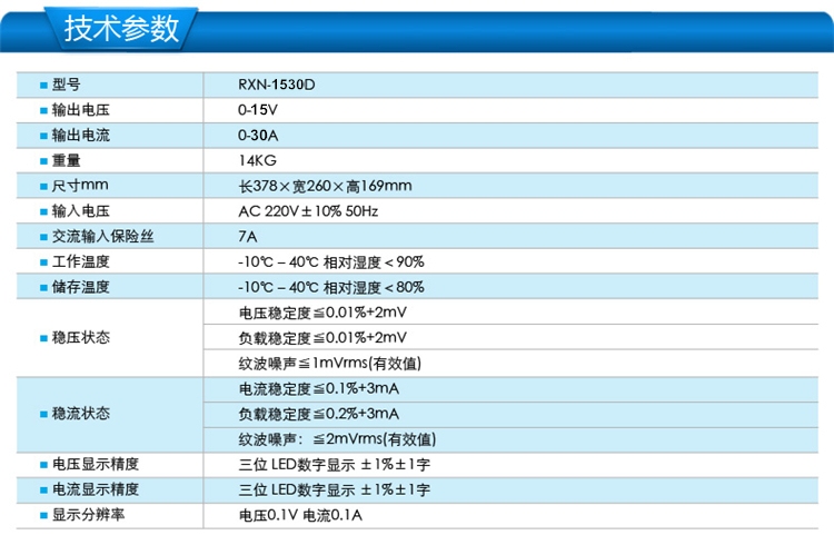 RXN-1530D线性直流电源(0-15V-0-30A)