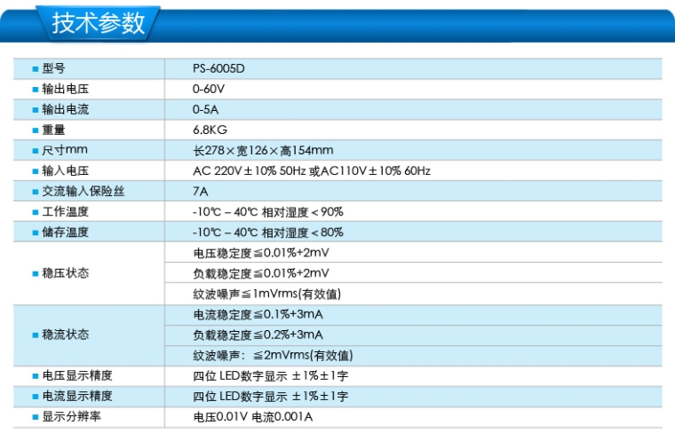 PS-6005D线性直流可调电源0-60V 0-5A