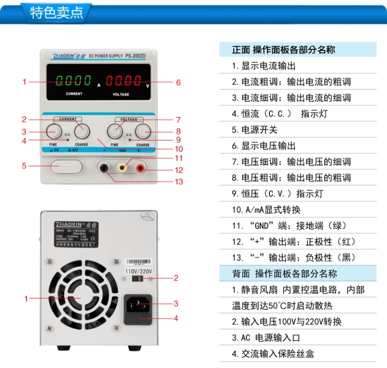 PS-2002D线性直流可调电源0-20V 0-2A