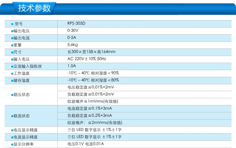 RPS-305D线性直流稳压电源0-30V/0-5A