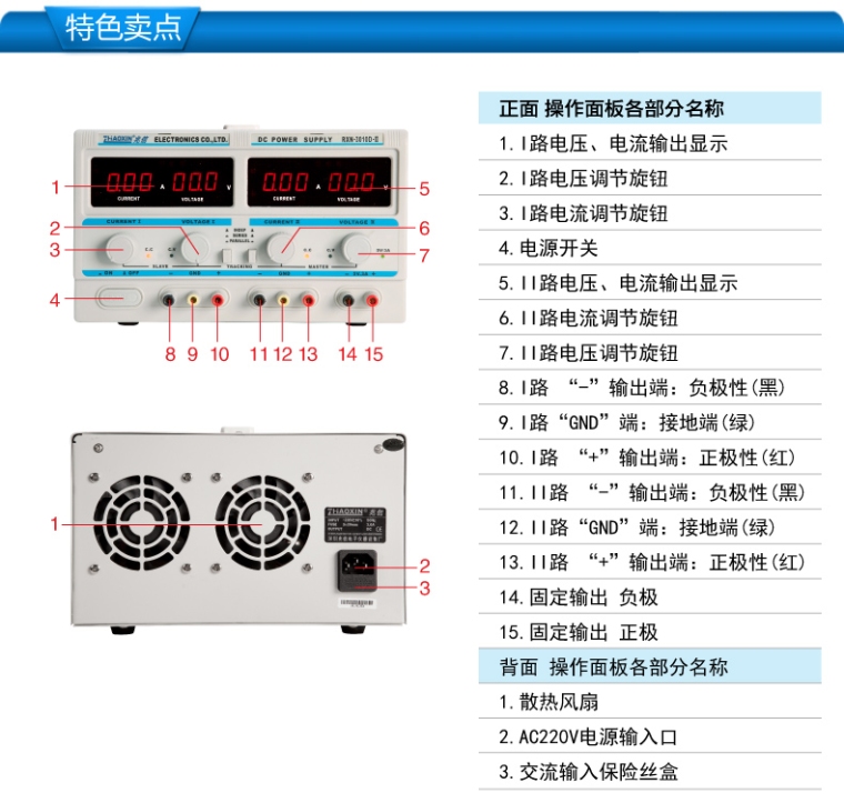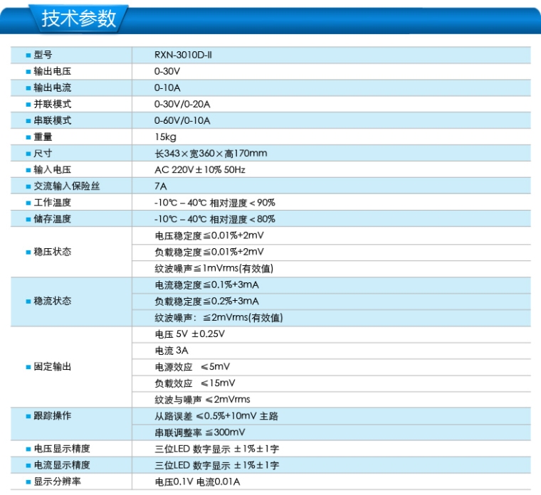 RXN-3010D-II双路输出线性直流稳压电源0-30V/0-10A