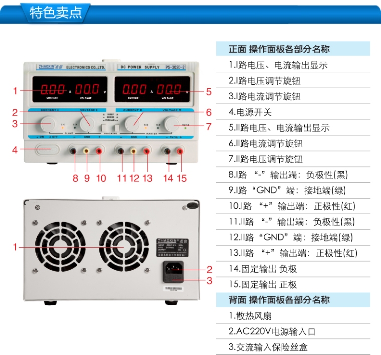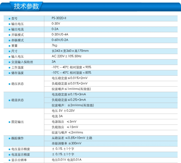 PS-302D-II双路输出线性直流稳压电源0-30V/0-2A