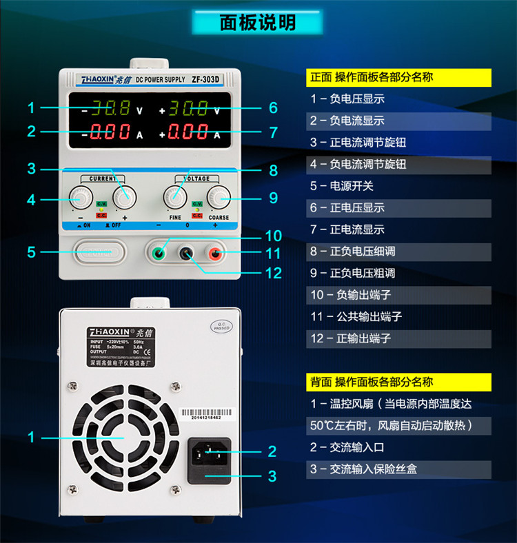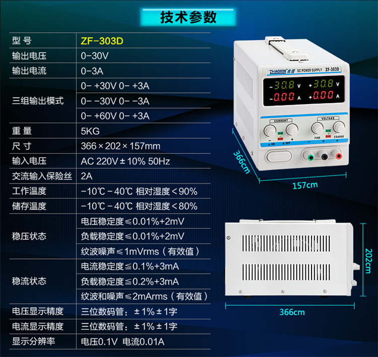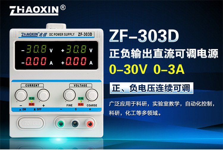 ZF-303D双路可调直流稳压电源正负30V3A电压同步实验开发维修可调电源(正负输出)