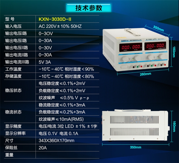 KXN-3030D-II稳压电源直流可调30V30A两路独立输出可调开关电源数显电源