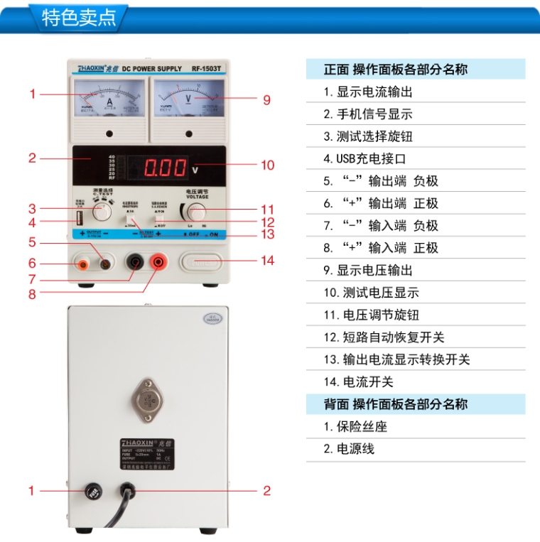 RF-1503T手机维修用电源0-15V/0-3A