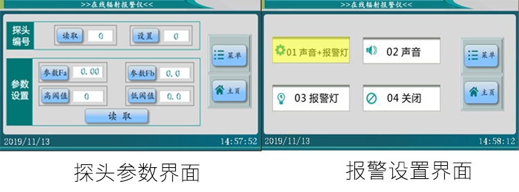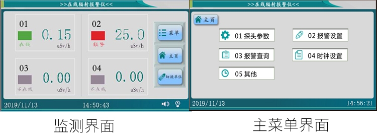 * 各探头具有两种报警模式(上限报警/下限报警),灵活适用于各种辐射安全报警场所。