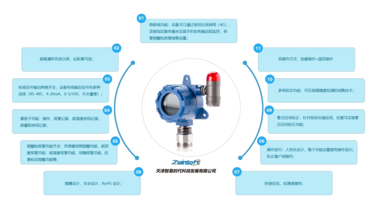 ZWIN-ESG1006气体报警器具有现场监测气体浓度显示、信号传输、LED灯和继电器报警功能将现场检测到的气体浓度转化为相应的标准信号,然后将信号传输到上位机,如PLC、DCS报警控制主机,进行统一显示管理和控制。带显示的氢气检测仪内部装有继电器,可以联动控制其他设备。