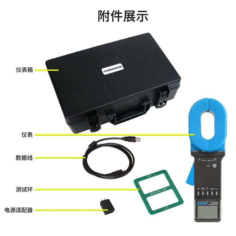随机附件 | 钳表:1件;测试环:1件;USB数据线/充电线:1件;电源适配器:1件;仪表箱:1件 |
