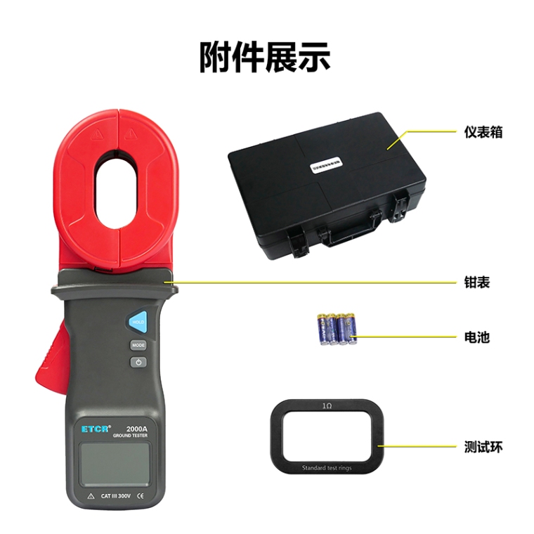 随机附件 | 钳表:1件;测试环:1件;LR6电池:4节;仪表箱:1件 | ||