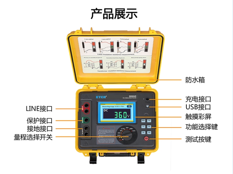 ETCR3520系列高性能高压绝缘电阻测试仪产品特点: