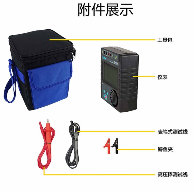 1、5档输出电压50V、250V、500V、1000V、2500V,宽量程0.1MΩ~200GΩ,*大短路电流2mA。