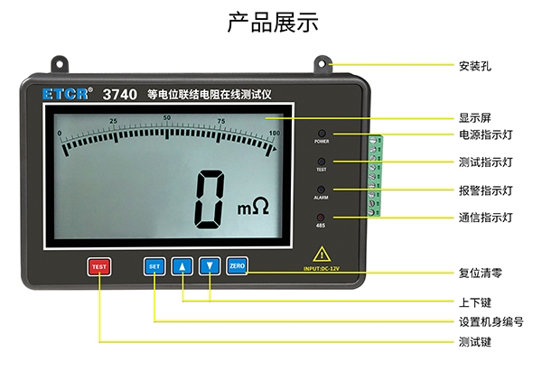 仪表采用微处理机技术,四线法测试,**精密可靠,测试仪提供485通讯及GPRS通讯方式,用户可根据MODBUS通讯协议进行二次开发、组建网络、实现远程多点在线监测等。测试仪采用大屏LCD显示,可设置测试参数,在现场查看当前直流电阻值。仪表具有声光报警功能,可设置报警临界值。测试仪安装简单,结构紧凑,**耐用。