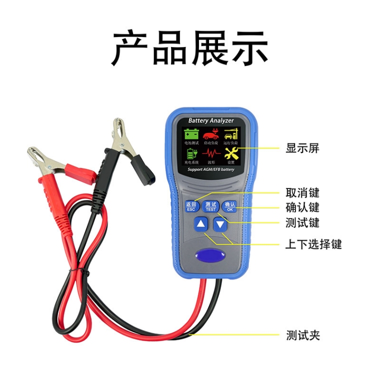 本品可用于铅酸蓄电池生产、汽车蓄电池经销、汽配维修等涉及各类铅酸蓄电池使用的系统行业中,是检测铅酸蓄电池性能的理想工具。并可通过简易测量模式测量设有CCA数据的12V电瓶车电瓶、UPS电池、摩托车蓄电池等。