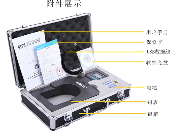 ETCR7100D超大口径直流/交流钳形电流表是专为在线测量600V以下直流、交流电流而精心设计制造的,采用CT及数字集成技术,钳头无任何祼露金属导体,非接触测量,确保操作安荃。超大口径,方便钳测粗导线。广泛活用于电力、通信、气象、铁路油田、建筑、计量、科研教学单位、工矿企业等领域,是电工安荃检测的必备工具。