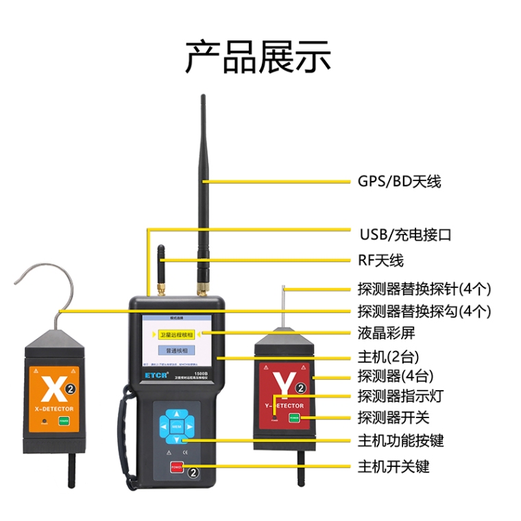 由2套仪器组成,每套仪器包括主机、X探测器,Y探测器、伸缩绝缘杆、监测软件、USB通讯线等,主机采用3.5寸真彩液晶屏,可以同屏显示相位、频率、相序及核相结果;向量图指示、相位指示,清晰直观;具有“X信号正常、Y信号正常、同相、异相”等语音提示功能,使测试更简单轻松。