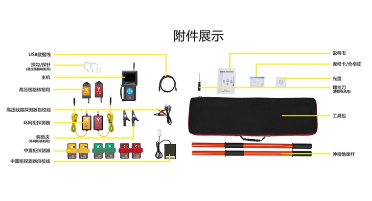 ETCR1560多功能无线高压核相仪由主机、高压线路探测器、中置柜探测器、环网柜探测器、伸缩绝缘杆、监测软件、USB通讯线等组成,主机采用3.5寸真彩液晶屏,可以同屏显示相位、频率、相序及核相结果;向量图指示、相位指示,清晰直观;具有“X信号正常、Y信号正常、同相、异相”等语音提示功能,使测试更简单轻松。