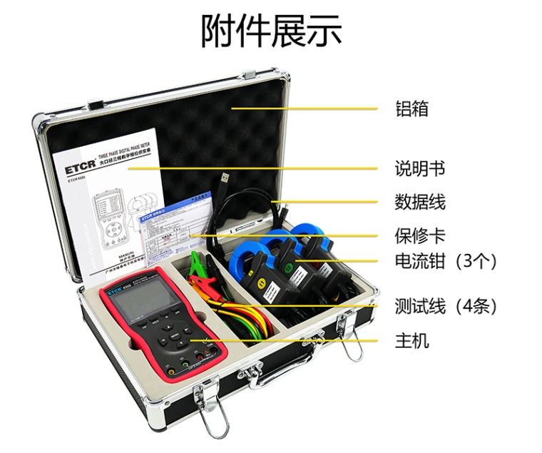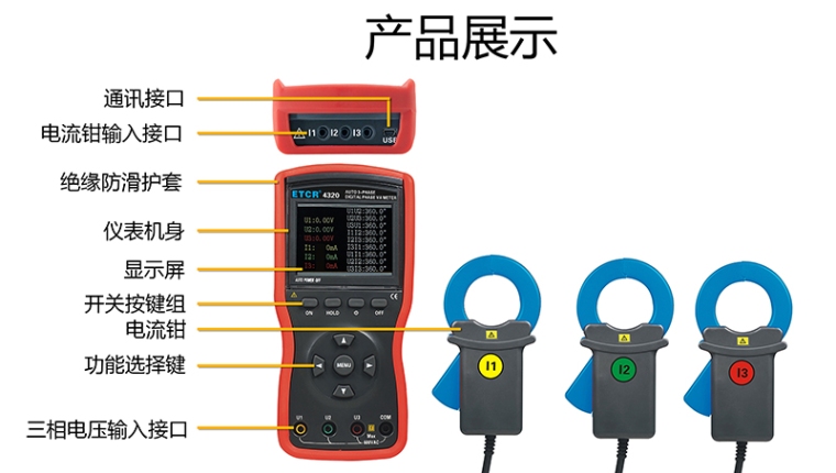 三相数字相位伏安表配有防振、防滑、高绝缘护套采用2.8寸TFT彩色液晶屏,动态显示,向量图指示,一目了然,尽显精美豪华外观。仪表采用大口径电流钳适用于粗大导线及大电流场合的测试。