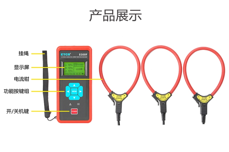 ETCR8300F-300X3,表示3路、内径为φ300mm的柔性线圈电流监控记录仪。