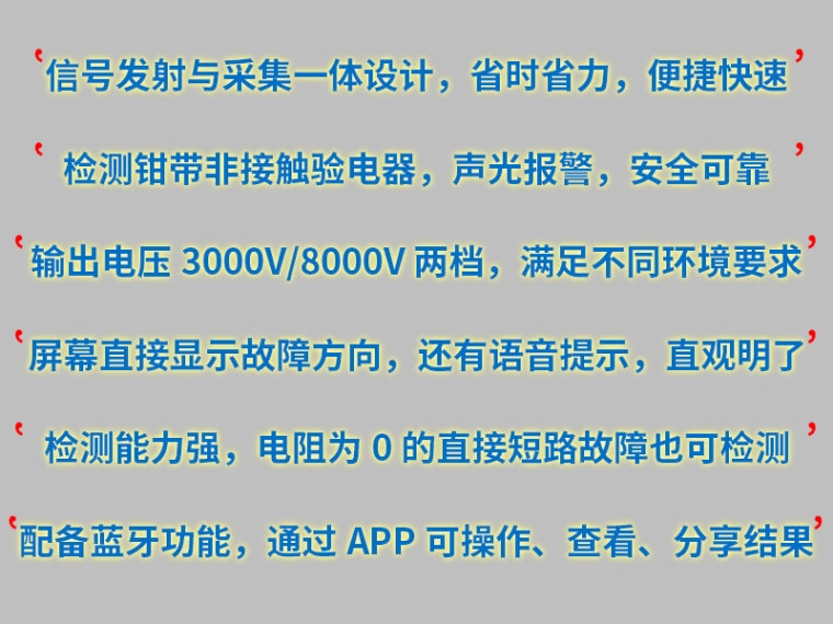 6. 短路能力强,可检测接地电阻为0Ω的直接短路故障。