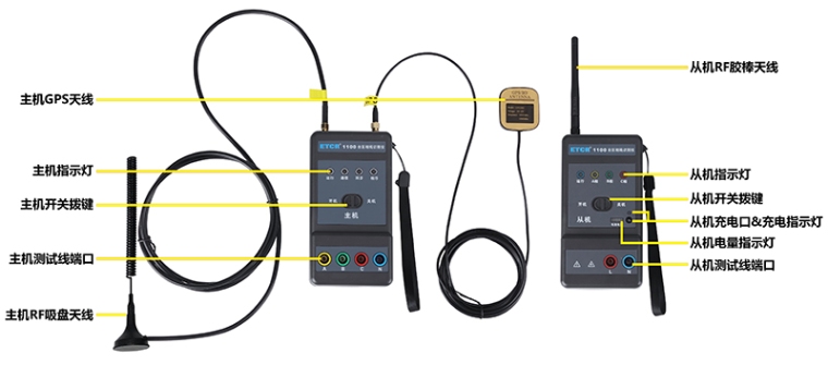 ETCR1100台区相线识别仪是一种便携式供电相线识别设备,用于识别同一台区的低压供电线路A、B、C相别。ETCR1100台区相线识别仪由主机、从机、RF天线、测试线组成。