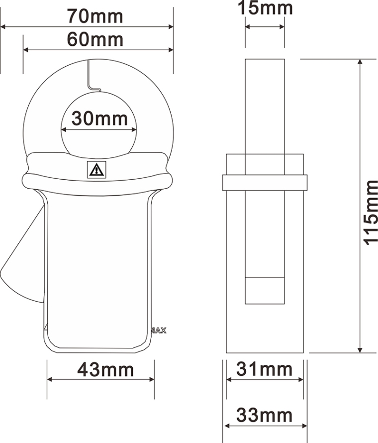 ETCR030A | 0.01A~300A | 0.01A | 1.0 | ≤2° | 3000:1 | ≤30Ω | 25mm×30mm | 180g |