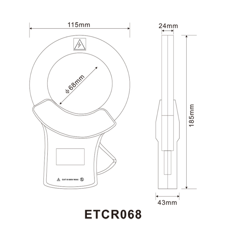 ETCR068 | 0.00mA~60A AC | 0.01mA | 1.0 | ≤2° | 800:1 | ≤50Ω | φ68mm | 530g |