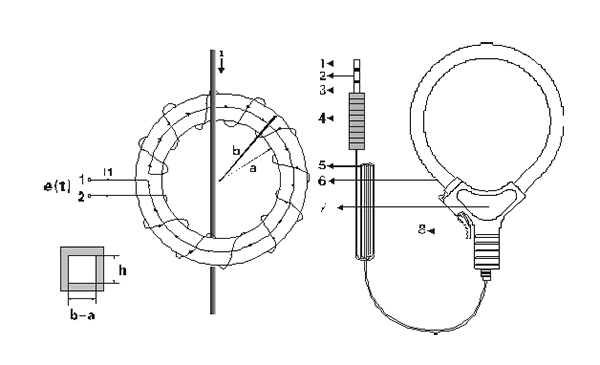 罗氏线圈测量电流的理论依据是“法拉第电磁感应定律”和“安培环路定律”。当被测电流I沿轴线通过罗氏线圈中心时,在环形绕组所包围的体积内产生相应变化的磁场,强度为H,由安培环路定律得:∮H·dl=I(t),线圈的感应电压与H的变化率成正比,因此,所有线圈的感应电势之和与电流的变化率成正比。也就是:e(t)=di/dt,对输出电压e(t)求积分,可获取I,因此,罗氏线圈一般与积分器配套使用。