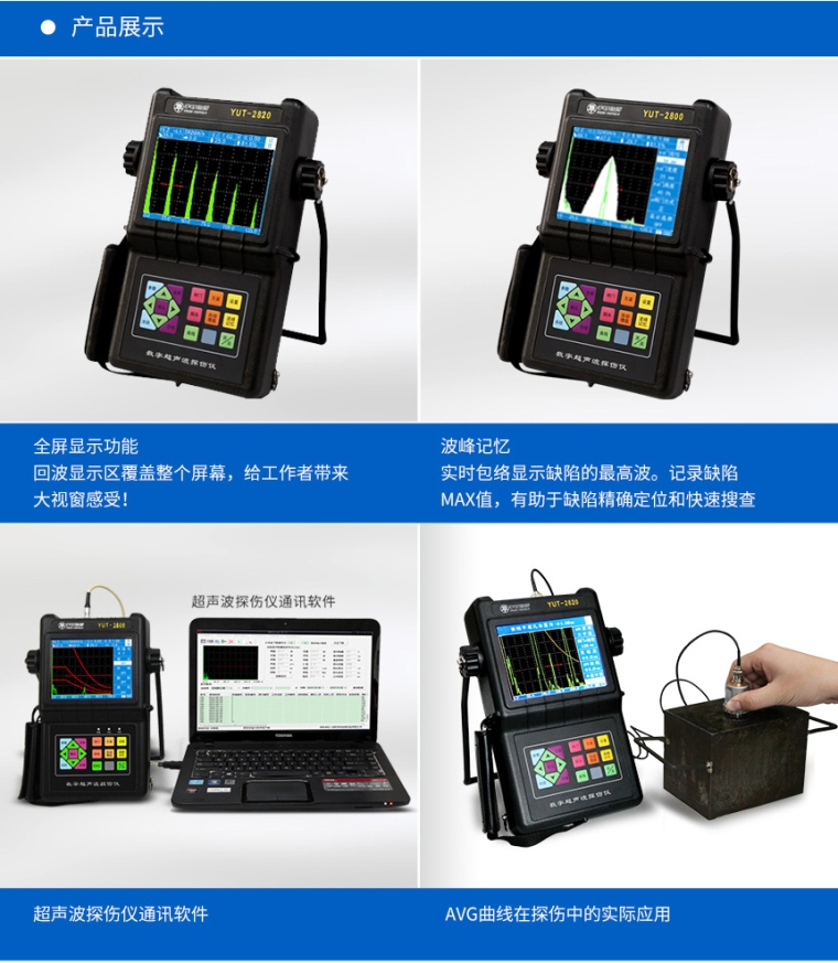 应用范围:YUT系列超声波探伤仪是一种便携式工业无损探伤仪器,它能够方便快捷、无损伤、准确地进行工件多种缺陷(裂纹、疏松、气孔、夹杂等)的检测、定位、评估和诊断。应用于高校,电力、石化、锅炉压力容器、钢结构、** 、航空航天、铁路交通、汽车、机械等领域。