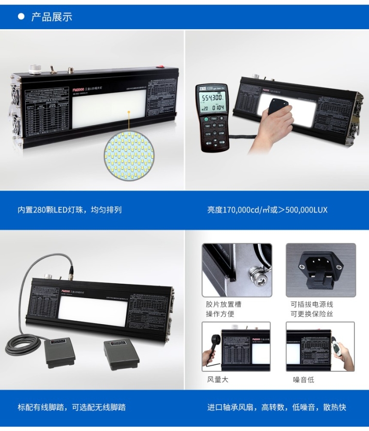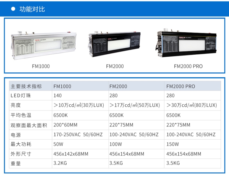 1、亮度高,FM2000观片灯亮度上限可达50万LUX。