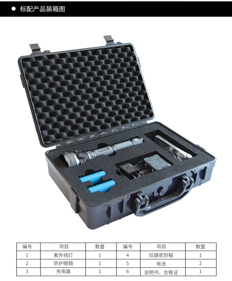 应用范围: 主要用途:荧光渗透检测,荧光磁粉探伤,荧光泄漏检测. 其他适用范围:油污、污渍检测,特种气体、油气管道的检查, 其他物质的荧光反射检测, 刑侦以及法医调查, 纸币鉴定、玉石鉴赏,农业、食品、医疗等其他相关行业。