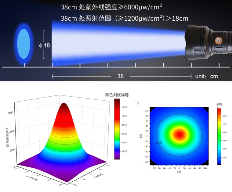 38cm处照射强度:20000 uW/ cm²