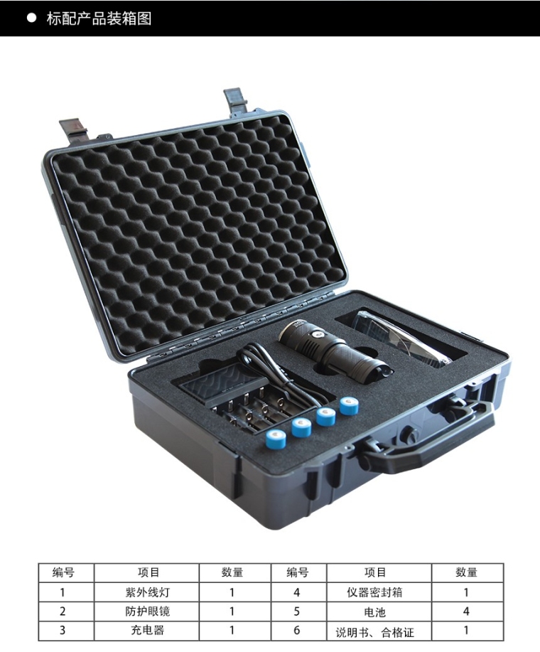 应用范围: 主要用途:荧光渗透检测,荧光磁粉探伤,荧光泄漏检测. 其他适用范围:油污、污渍检测,特种气体、油气管道的检查, 其他物质的荧光反射检测, 刑侦以及法医调查, 纸币鉴定、玉石鉴赏,农业、食品、医疗等其他相关行业。