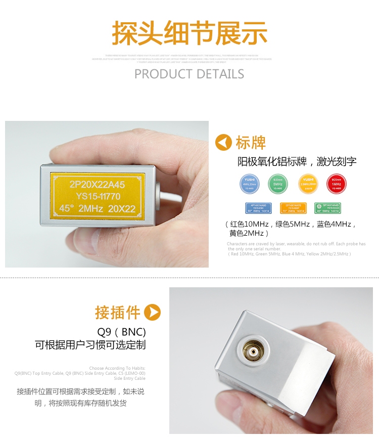 宇时宇时先锋超声波探伤仪横波斜探头适合金属件内缺陷测量,如果需要其他参数的探头可定制!探头元件用料精良,灵敏度高,使用时间长!
